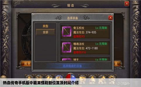 求热血传奇手机版赤月精英怪有哪些 热血传奇手机版赤月精英怪有哪些?本次小编就来为大家介绍!感兴趣的小伙伴们快来看看吧!丛林迷宫刷新精英怪:斑斓腐骨赤月峡谷广场刷新精英怪:巨魔抉择之地刷新精英怪:恶魔蜘蛛山谷密道刷新精英怪:双头巨魔精英怪刷新时间:1小时刷新一次,比如上一只打恶魔蜘蛛的时间。热血传奇...