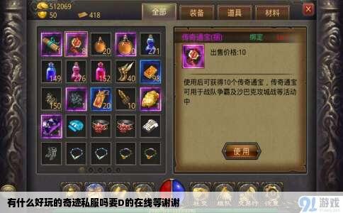 好玩的奇迹私服有哪些 20倍的,主要看自己的喜欢,我觉得长久稳定最重要,最近在玩活力奇迹,***.com你看看现在还有什么比较好玩的奇迹私服吗 有个叫107mu的,网址好像是107mu.***.com是0。97D怀旧版的,我在玩,还不错,服务器蛮稳定的,速度快,打算长期玩下去,有空一起来,联系我...