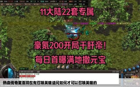 私服怎么召唤英雄 先去英雄管理处点击创建英雄战士、道士、法师男女随便你选啦英雄管理处一般私服在新手村就有,如果没有一般在盟重土城安全区右上角都会有的,你自己找找看呢。创建完英雄点右下角第一个按钮召唤英雄。这时候恭喜你,你的英雄就出来了!跪求热血传奇如何召唤英雄及四叶参哪里打 召唤英雄是不是用记忆...