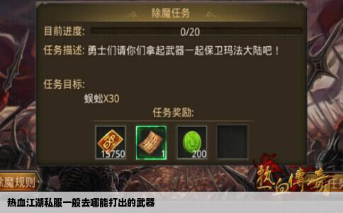 自己开个热血江湖私服 上网随便找个热血江湖私服网站,里面有制作私服,不过要租服务器的,最便宜的1500元。买完服务器之后,新建一个程序编辑器,把武器码,装备码,NPC码,怪兽码,地图码全部输入。然后在每个地图上放怪跟NPC。热血江湖私服怎么拿boss武器 如果是恶灵的就得到了120,如果你玄冰5...